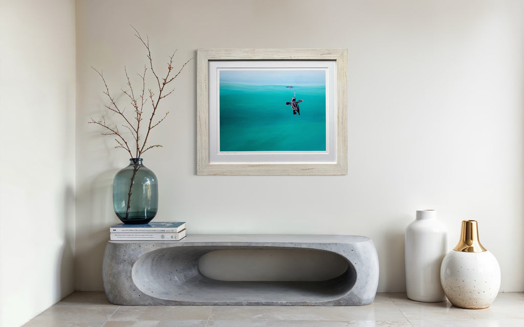 Printed with archival pigment inks on 310gsm museum grade Canson Cotton Photo Rag. Framed in lime-washed timber with non reflective museum glass.