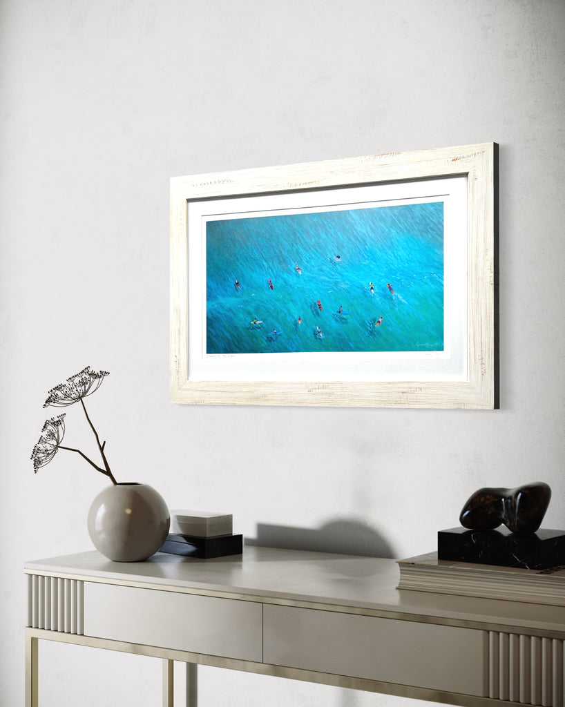 Framed giclee print of 'Waiting for the Wave'