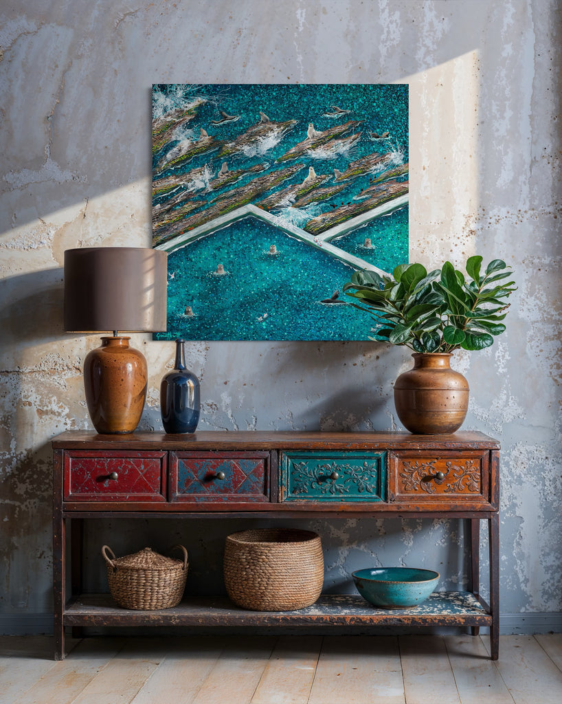 'Seal Party at Blue Pool' Acrylic on Canvas